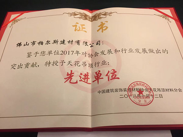 柏爾思榮獲中國(guó)建筑裝飾材料“先進(jìn)單位”